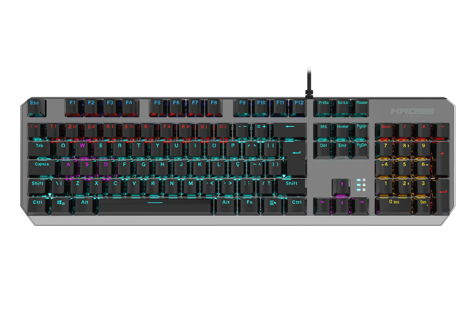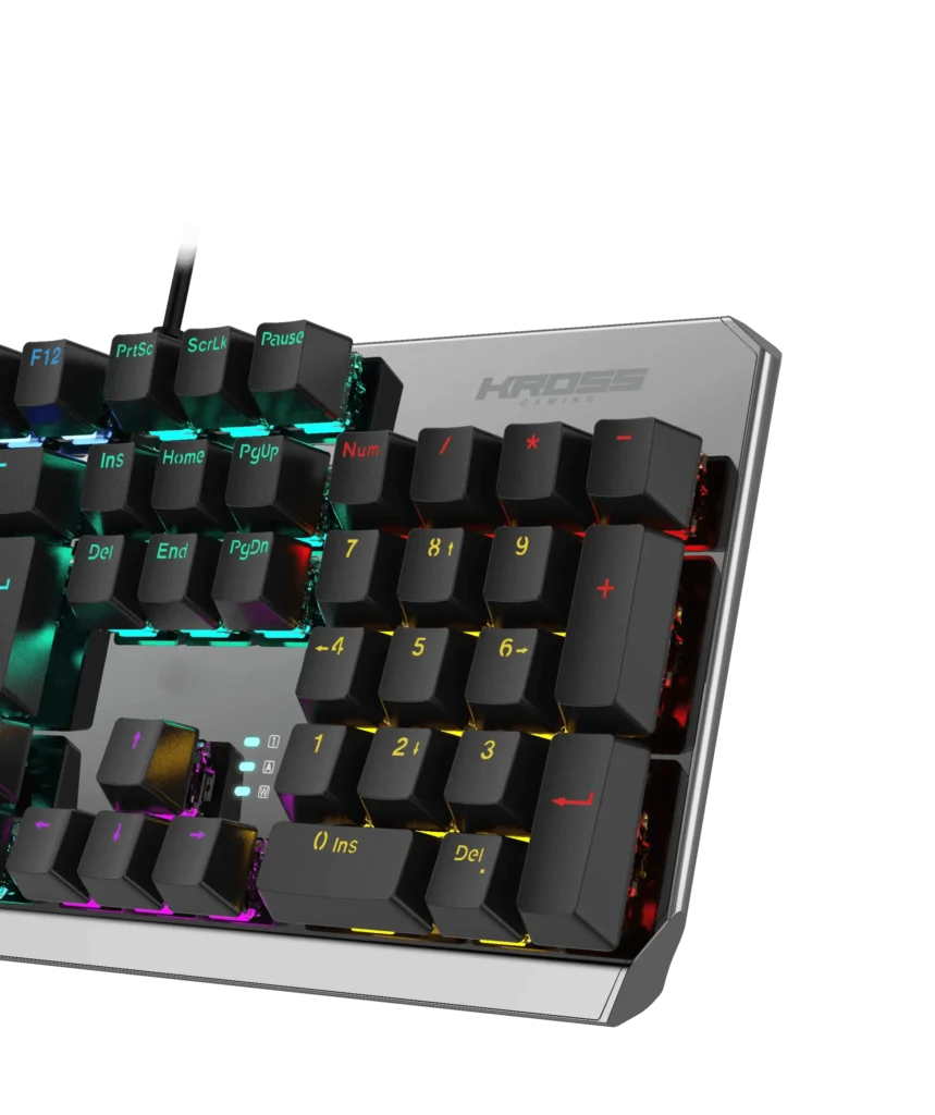 O Teclado Randgrid possui Switches Clicky Azul altamente duráveis, combinado com um design elegante, uma estrutura de metal e iluminação em LED, o tornando ideal para os gamers que querem um teclado de alta qualidade sem perder a comodidade do teclado numérico.